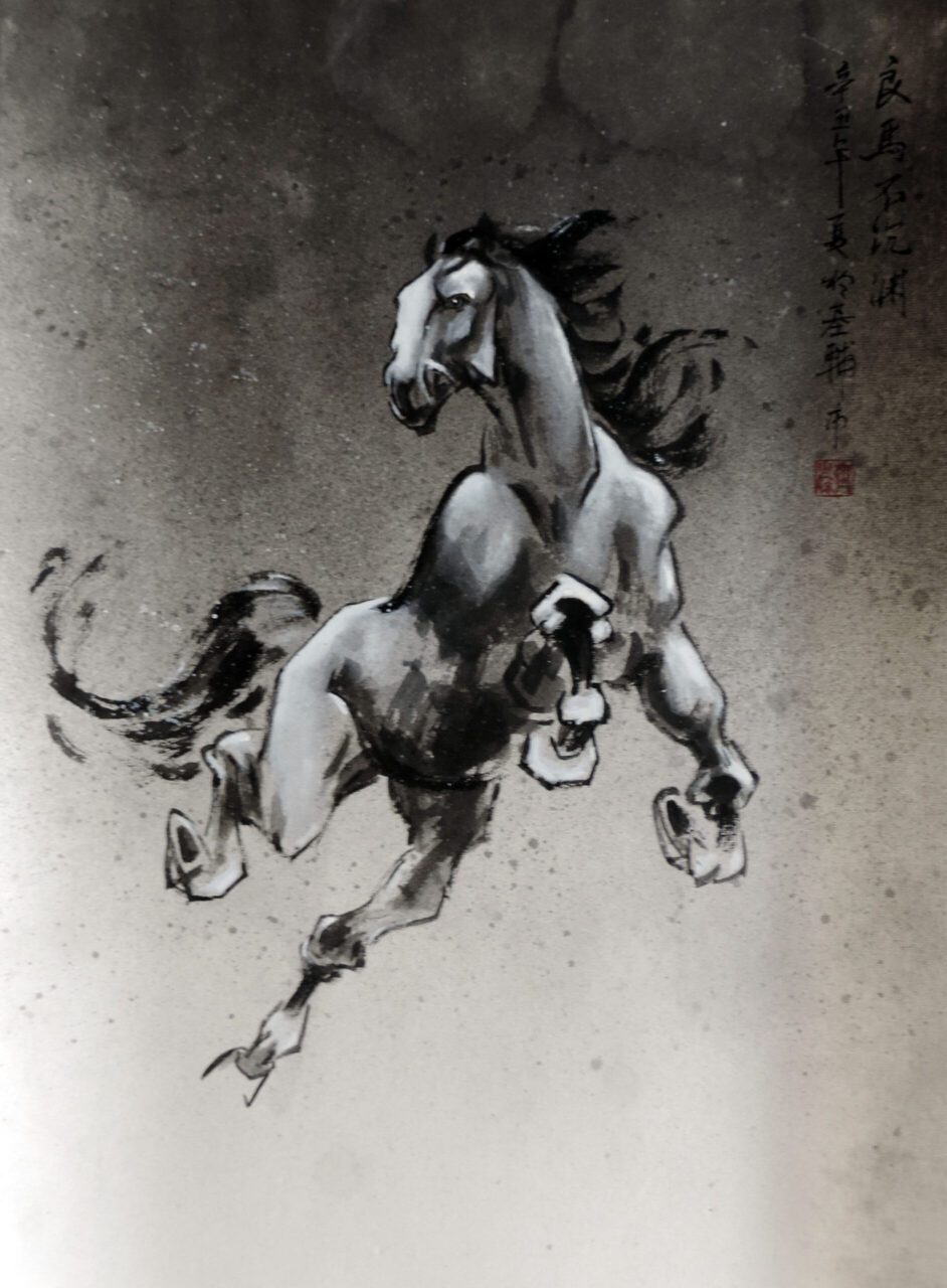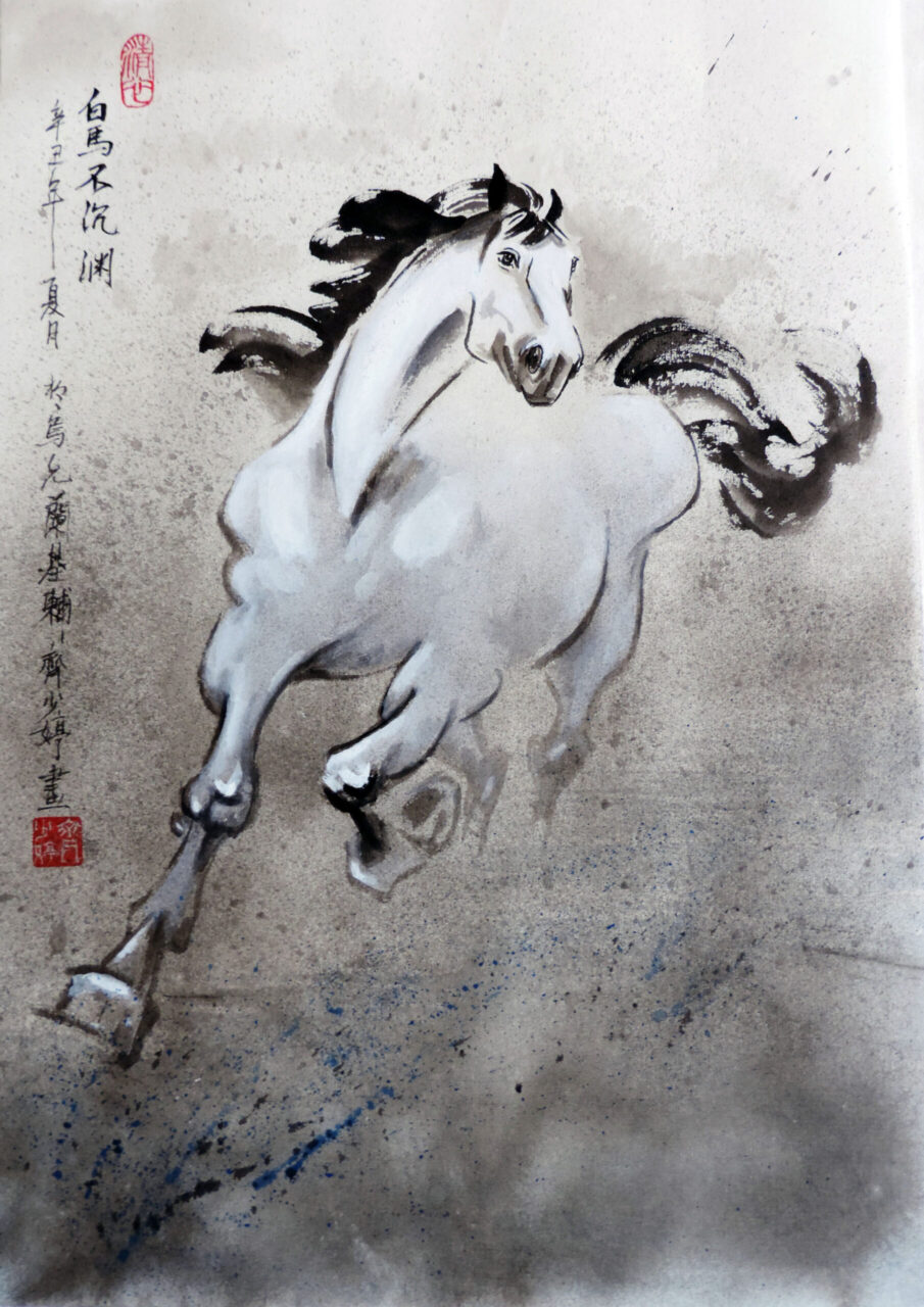 In meiner Malerei versuche ich, diese tiefen Bedeutungen zu erfassen, indem ich die Bewegungen und das Wesen des Tieres einfange. Die Technik der „Xie Yi“ ermöglicht es mir, durch fließende Pinselstriche die Energie und Persönlichkeit eines Tieres zu übertragen. Dabei ist es wichtig, die Balance zwischen Freiheit und Präzision zu wahren.